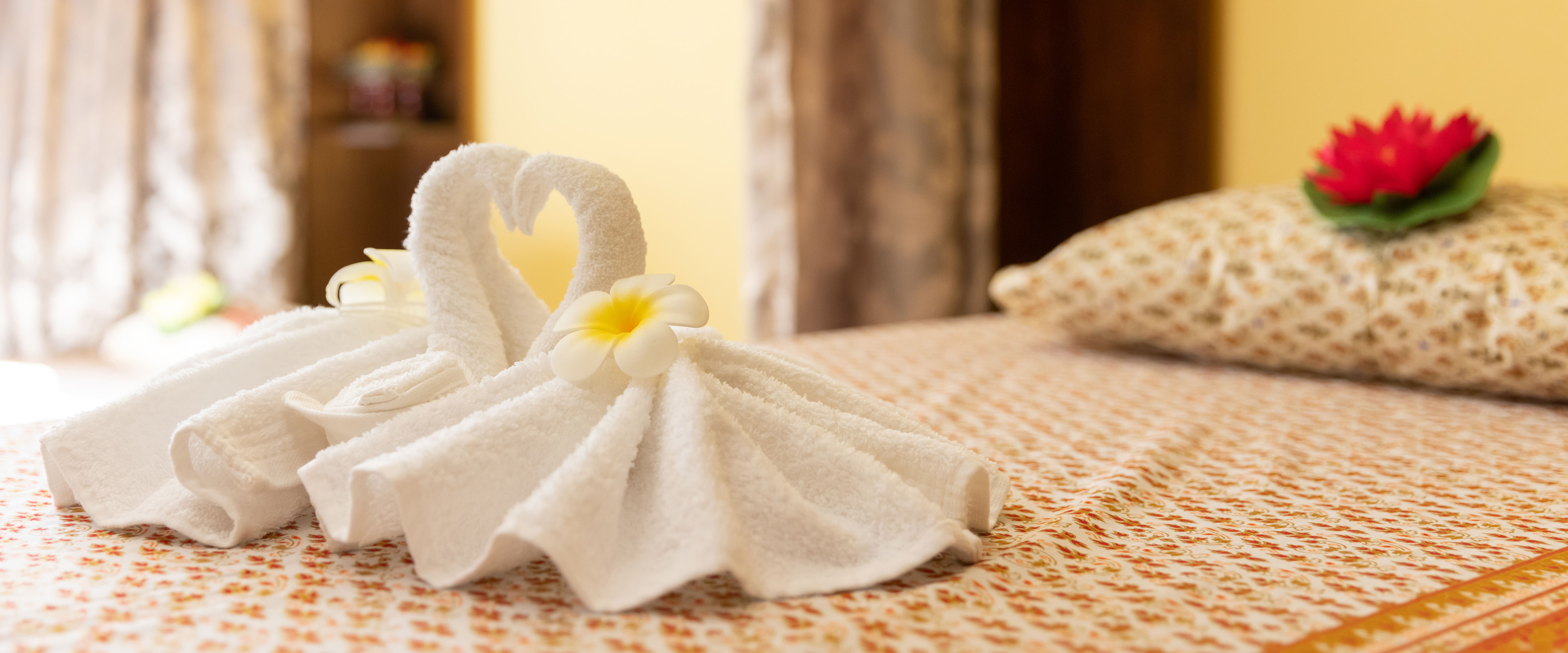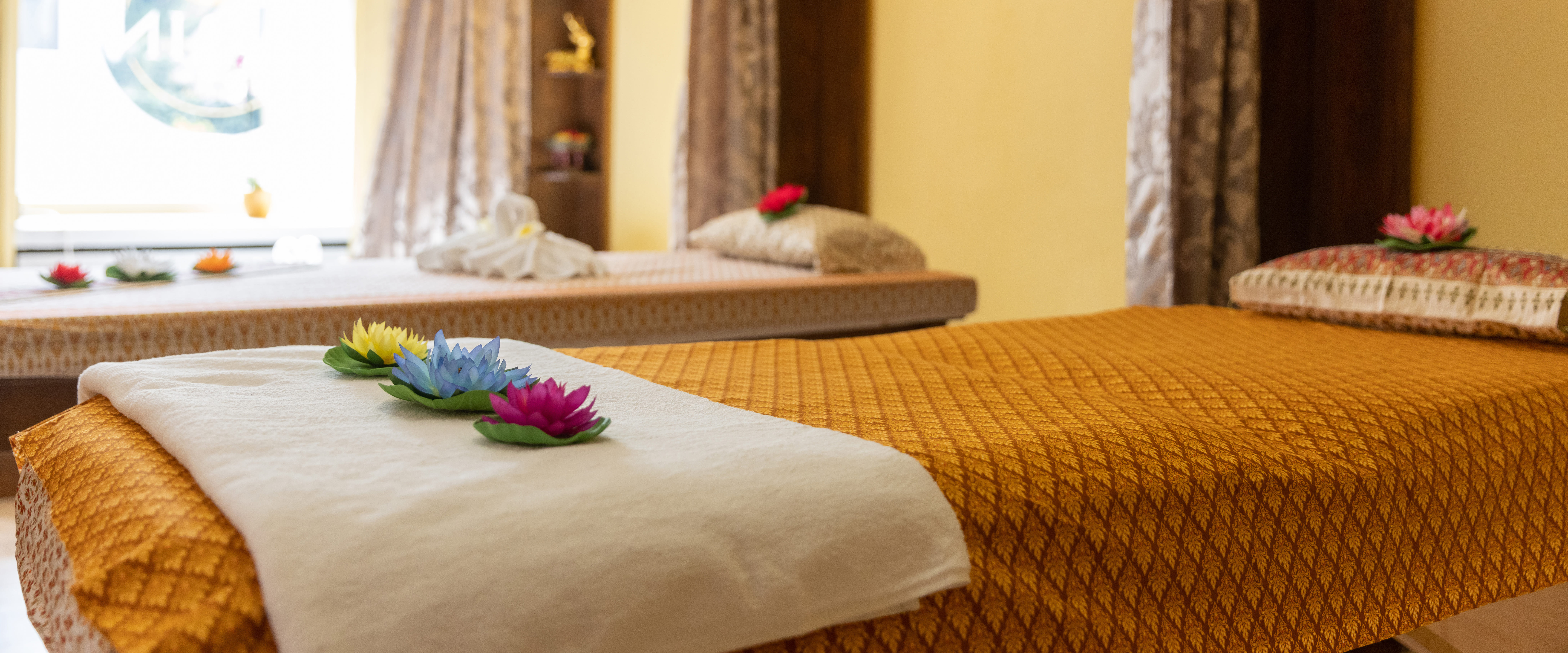 Die traditionelle Thai-Massage ist eine Akupressur-Massage. Bei dieser Massageform werden die Triggerpunkte des Körpers mit langsamem und rhythmischem Druck bearbeitet. Durch Dehn- und Streckübungen werden die Muskeln hierbei mobilisiert und gelockert – eine Wohltat für Körper, Geist und Seele!